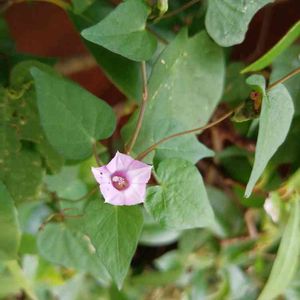 田んぼの畦に咲いてた花 あなたはだあ〜れ 花の径約2センチ アサガオかさつまいもの様な葉、大きさ4〜6センチ位