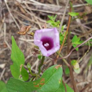 ご近所さんの、田んぼで、見つけた、超小さい、朝顔、直径1センチ、思わず、、、、、 がんばれー🚩😃🚩