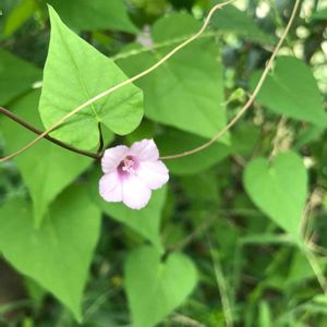 藪の中に初めて見た薄紫?薄ピンクのツルの花 3cm位の なんという名前か教えて下さい〜〜