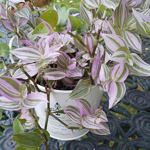 今日も降っています☔️ トラディスカンティア🌿 薄い紫色の斑入りが好きです😊 昨冬に切って寒い間は、室内で水耕栽培。発根したのを、土に植えました。 ちょっと、斑が入らないグレた葉っぱもいます😂