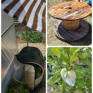 ハウス横のケーブルドラム机のペンキ(防腐剤)塗り 〖ペンキ足らなくなった〗 メダカの(睡蓮鉢)の遮光 〖メダカさまさま。ちゃう100均様々〗 りんごとイチジクのネットかけ 〖こんなやり方でええのか?〗 草引き 〖抜いてもぬいてもキリがない〗 多肉を見てると モヤモヤして辛いので 現実逃避中