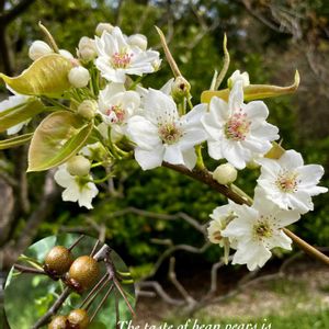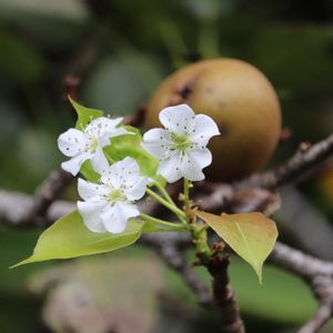 今日のお花♡ ナシ🍐 去年10月 長野へ行った時に 見つけました👀✨ 「ヤマナシ」という 小さなナシ🍐です😊