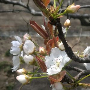 今日のお花 ナシ🤍 娘の友人の実家が梨農家🍐 何年か前の4月のpicです📸 真っ白な桜によく似たお花です🌸