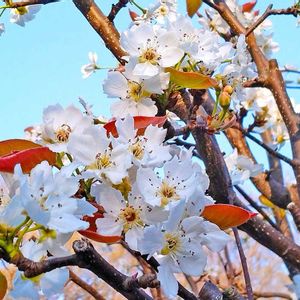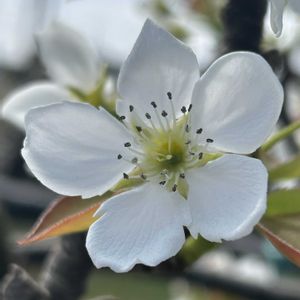 今日のお花ナシ(梨)は 4月の上旬に 葉っぱとほぼ同時に展開し 花を咲かせます。 同じバラ科の桜に似た5弁花ですが 桜よりも白さが際立ち 雄蕊の葯が目立ちます。 因みに 梨の生産高第1位と言えば 鳥取県のイメージがありますが 今では 1位 千葉 2位 茨城 3位 栃木で 鳥取は 第6位なのだとか…。😯 中国 朝鮮半島原産。 バラ科ナシ属の落葉中高木。