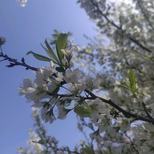 畑の回りに植えられている梨 の花 木についてる花数はそれ程ではないのだが それにしても私が畑に来るようになって一番咲いてて…びっくり👀 いつもはお昼の🍙たべてると✈️✈️✈️が「また来たよ」というほど何機も飛んでくるのだがモクモク雲が出てきてたのでルートずらしたのか静かだった☺️ 雲の切れ目にお月様 …みえるかな😁
