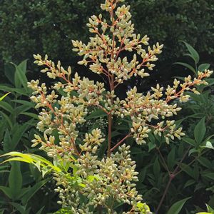 おはようございます。 雨の朝になりました。 マンションの花壇に咲いている ナンテンの花です。 花が開いてますよ~。