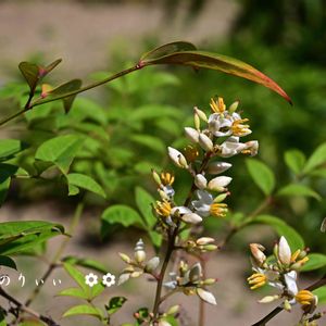 南天の花って、こんなに綺麗だったんですね、見違えてしまいました。 オレンジ色の茎が可愛い💕