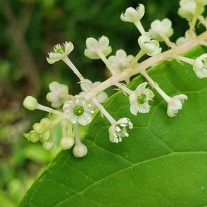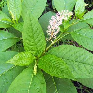 マルミノヤマゴボウ 山地の林縁に生えています😊 分果ではなく球果(丸実の)であることから名がついたそうです🤠 薄ピンクの花序が直立します🧐