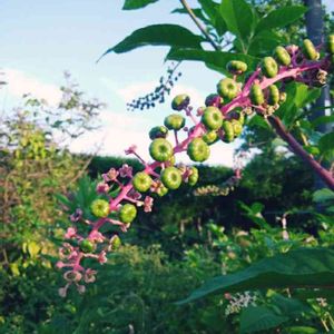 この時期のヨウシュヤマゴボウはグラデーションがいい 毎回思うけど花と実の境目わからないね