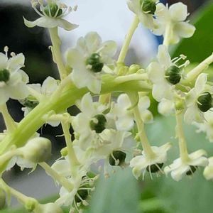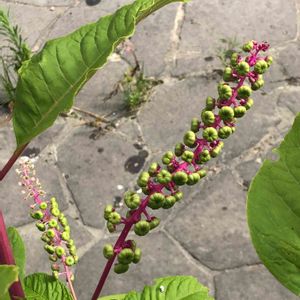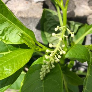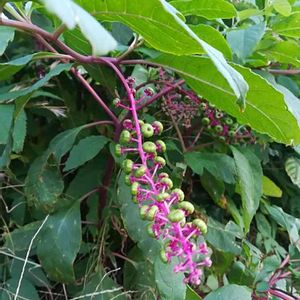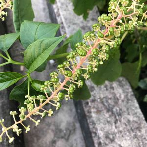 ヤマゴボウ お散歩途中の独身寮のお庭に生えている子です。まだまだ青いです。 夏の遅い時期に根元からバッサリ草刈り機で切られてしまっていたので、まさか、またちゃんと実を付けるとは思いませんでした。恐るべし❗植物の生命力!💪