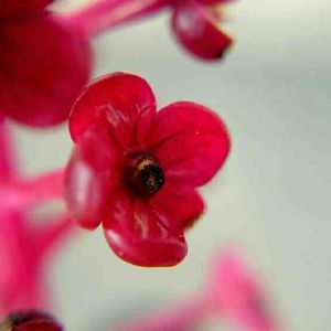 爽やかな朝、いかがお過ごしですか? 今日はヨウシュヤマゴボウです。丸いみかんのような子房の回りに10本の雄蕊が、そして子房の先には多分10本の雌蕊の柱頭が見えています。実が熟すと赤紫のブドウのようになります。 2018/5/23 神奈川県にて撮影。 Phytolacca americana