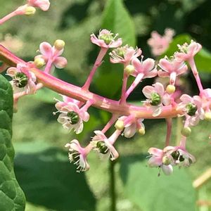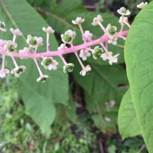 ヨウシュヤマゴボウ ヤマゴボウ科 ヤマゴボウ属 花は可憐💓 マンガによく出てくる赤ちゃんぽい。 白いヒラヒラのついた帽子被って、おしゃぶりくわえてる感じに似てる😃
