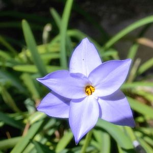 【ハナニラ】《ネギ科》 花言葉 「悲しい別れ」「耐える愛」 光に反応する性質なので、太陽に向かって花を咲かせ、夜や曇り、雨の日は花を閉じます。 春に星形の花が咲くことから英名ではSpring starflowerと呼ばれています。