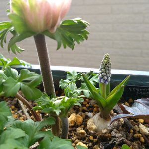 −3.5℃🌅/3℃⛅️ ムスカリって、こんなかわいかったっけ⊹ ࣪ ˖💞 ずっと葉っぱおばけと思っていてごめんなさい!です⭐️ (おまけ) HCでみつけた小さなヘデラ🌿 先週作った球根寄植えにin♪