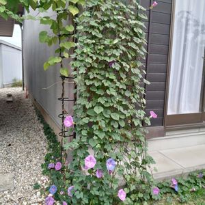 オーシャンブルー この朝顔が まだ珍しい頃に家の庭に やって来ました 緑の葉っぱ🌿に 紫に中心部がピンクに 少し蛍光がかった 美しい花色が一際輝きます✨ ここ数日朝に 蝉の声が響きます 薔薇🌹🌿のトゲある枝にとまって ミンミンみんみん➰ 次の世代に引き継ぐ為に 短い一生を 生きぬきます 家の木陰でよかったら 羽を休めてね~🤔