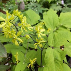 トキワイカリソウ メギ科 若葉の季節に似合う、 爽やかな花が 姿を見せてます。 葉の縁にとげ状の毛がある。