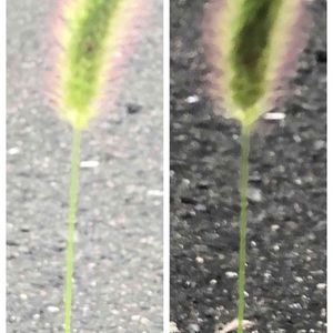 線路沿いのフェンス内にて キンエノコロ リベンジしたんですけどまた風とフェンスに遮られ… 右にあるのが普通のエノコロ 左の2本がキンエノコロ