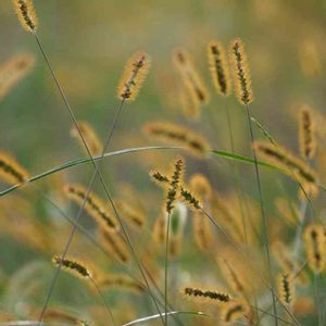 金狗尾(キンエノコロ) 耕地周辺の畦や土手、空き地、河川敷などに生えるイネ科の1年草。小穂の基部の剛毛が黄色味を帯びた褐色で、花序全体が金色に見えるのが最大の特徴。狗尾草(エノコログサ)や秋の狗尾草(アキノエノコログサ)と違い、葉鞘(ようしょう💬イネ科などの葉で、葉の基部が鞘状になって茎を包んでいる部分)の縁に毛がない。 出典『四季の野の花図鑑』