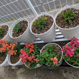 2025.5.14夏のお花植え付け ↖スターティアラ ホワイト ↑スターティアラ ブルー ↗サニープリンセス ピンク ↙コレオプシス ソランナ ゴールデンスフィアー ↓アンゲロニア エンジェルフェイス ウェッジウッドブルー ↘スーパーランタナ トロピカルサンセット 6~8号鉢に植え付けました~🌼 夏に強い❗憧れて探していたお花です🎵 夜間…暗い砂利庭で植え付けたのでどうなってるか怪しいです…が 梅雨☔⚡🌀~猛暑✨☀✨頑張ってほしいです。