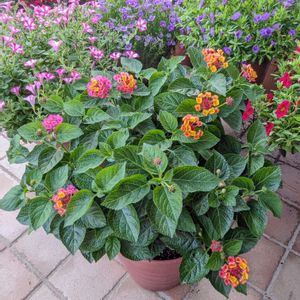 スーパーランタナ。 私はこの花からよく声が聞こえます… 8号鉢って小さいのよ! この花が大きくなるの知ってるでしょ。 こんな炎天下朝水あげてもカラカラよ🔥 本当によく耐えてくれました。 暑くて鉢増し出来ませんでした😔 やります、やります今月に…