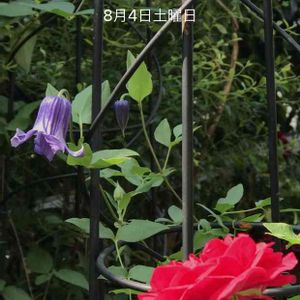 おはようございます☀ 連日危険な暑さが続いています 今日も暑くなりそうです💦 暑くてもお元気なのはクレマチスさん 細くて華奢なのに不思議です 今朝開花したのは待望のガイディングプロミスさん💗 育種家レイモンド エヴィソン氏作出 日射がさほど多くない場所なので開花に時間かかりましたが、 立ち枯れ病からの復活です✨ 花弁4枚は気になりますが、深い紫色と花芯が印象的✨