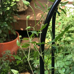 今日はもう1枚 📷 本来ならお花が咲いてから投稿すればよいのでしょうが、、 何と初めてクレマチスさんの誘引なるものをしました🤗 蔓が伸びて絡まり、蕾が固まっていたので 恐る恐る絡まりを解し、オベリスクに誘引 不器用な私にはなかなか根気のいる作業でしたがなんとか完了! あとは開花を待つのみ☺️ クレマチスはソワレさんです💞 今写真をあらためてみましたが、枝がゆるゆるね😅😅 もっとしっかり固定した方がよいのかしら🤔