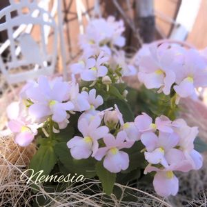夏に☆にしてしまった宿根ネメシアさん😂 ①リベンジで淡いピンクで真ん中が黄色の子をお迎えしました💗 ②サビサビショベルと ③またまたポリゴナムと😁可愛い~💕