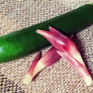 季節感🐦✨ 茗荷とズッキーニ。 味噌汁にすると美味しいらしいのでやってみたくて🍚 こう見るとミョウガって多肉っぽいですね🌵