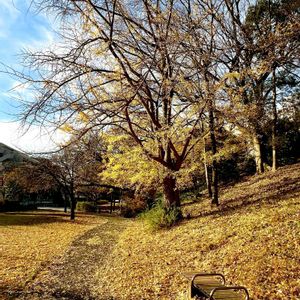 🏷️火曜ベンチ イチョウも終わりですね💛 ベンチと記念撮影。