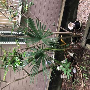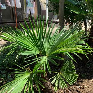 こちらも隣の空き地との境界に生えてるヤシのような。よく見るやつですがなんて名前なんでしょうか? ハーブ畑を日陰にするので刈りたいけど可哀想なのでやめてます😅