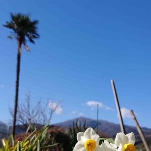 風が強いです🍃春一番でしょうか? 名もない田舎道をお散歩。 風に揺れる水仙と遠くに大山。スックとたった棕櫚の木がカッコいいです❣️