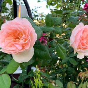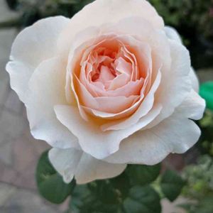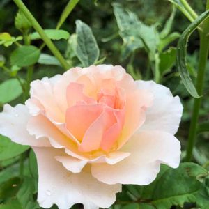 バラのプリンセスシャルレーヌドゥモナコさんが再び咲き始めました。 夏は白に近い薄いアプリコットピンクです。ふわっとしたやわらかな咲き方をします。