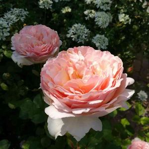 ブランピエールは満開、続いてアミロマンティカも咲き始めています。 だいぶ傷んだ花も出てきたので今日は脚立出して花柄づみです。