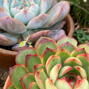 🏷ド真ん中の日 ⬆️❤️レッドモラン 渋〜い赤でキュッと締まって カッコイイ😆 ⬇️🍀姫明鏡 夏前は下にお子ちゃまいっぱい大家族だったのに、今は母1人子1人🥲 葉っぱ🍀のお髭スゴーーッ👀