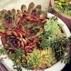 半年前に寄植えした鉢ですが、めちゃくちゃ大きくなってしまった💦 さすがに狭そうだなぁ〜。 セダムも伸びすぎたし、植え替えるか😅