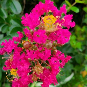 こんにちは👋😃 6月20日から咲いていたサルスベリ。 8月には入り、花が傷んでいたので、切り戻していた濃いピンクのサルスベリ。 花芽が、膨らみ始め 一部が、今年2度目の花が、咲き始めました。 写真撮っている間に 蚊に噛まれてしまいました。 主人の里山からの移植して、10年くらい経ちましたが、樹高1.5m越えました。