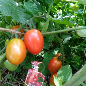 おはようございます😃 朝から暑いです🥵 1.ミニトマト(シュガーミニ)が色付き始めました😄 2.万願寺とうがらしも もう少しで収穫ができるでしょうか?素焼きにしても良いですし、万願寺みそにしてご飯のお供に?楽しみです😋 3.アーモンドネックレス 4.朧月andルビーネックレス 5.オウゴンマルバマンネングサ
