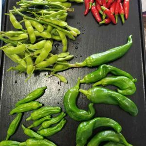 こんにちは☔ 収穫しました😊 ししとう。 ミニトマト🍅 オクラ。 万願寺とうがらし。 雨のあと、徐々に成長してくれてます🤗
