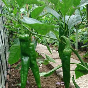 万願寺とうがらしです。 こちらも同じく萎れてきたら水を与える厳しい環境で育てています!