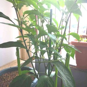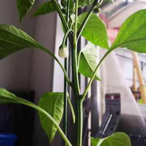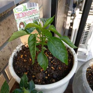 万願寺とうがらし 唐辛子🌶の苗を探していて 時間がなくて よく見ずに購入してしまいました😫 どうしようかと ポット苗のまま片隅に置いていたら 気づけば結実😳 仕方ない・・・ お花は可愛いし育ててみます...♪*゚