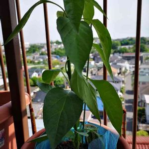 水耕栽培でもここまで成長! 万願寺とうがらしが1mちかくなってきました。 実は大きくなってるのは1つ。これに力を入れてるからか、ほかは花の段階でポロッと取れてしまう。 でも蕾や花はまだ20個くらいあるので気長に成長待ち。