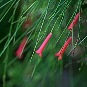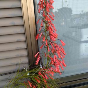 公園に隣接のお宅から公園の通路側に 降りそそぐ様に『ハナチョウジ』の 花が咲いて綺麗でした☝( ◠‿◠ )☝ 学名:Russelia equisetiformis 和名:ハナチョウジ(花丁字) 科名:オオバコ科 属名:ハナチョウジ属(ラッセリア属) 原産:メキシコ
