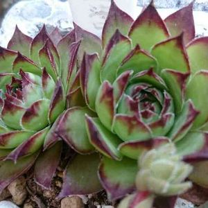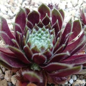 多肉を知った初期から居る センペルビウム属 ロンゴバルダムさん 今はまだ真っ赤に紅葉してます。 そろそろ買った時のように緑が中からのびてくるかな? また沢山子供が出るかな? とても楽しみ❤