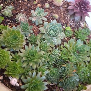 お疲れ様です〰️ センペルビウムメラニー よく見ると細かい毛に朝露がビッシリ 放射冷却にて7℃ 寒い((((;゚Д゚)))) 暑すぎの夏がやっと終わったかと 思ったら急に低気温😱 霜の心配しなきゃ(тロт) また軒下に移動だす🪴💨💨💨 早くお休み来ないかな〰️ 冬前に何とか植物整理整頓🌱