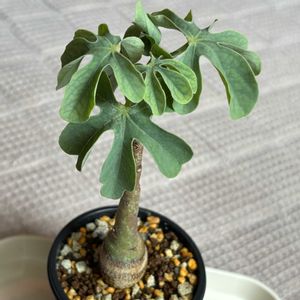 アデニア グラウカ 強剪定したグラウカ。すぐに新芽を噴きました。 切り取った上の部分も土に挿しておいたらすぐに根を生やしました。 塊根の生命力は強いですね。