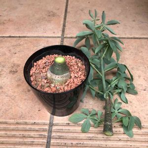 昨日の園芸店で班入りハイビスカスと一緒に購入したアデニア・グラウカです。以前にアデニウムを購入した時から気になってました、同じアデなので。 ネットで調べると根元を太らせるには強剪定が必要なようなので近いうちにパッツン✂️しようと思います。