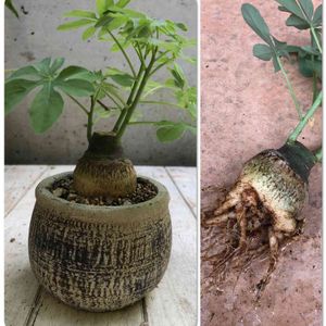 強剪定後、1ヵ月。 順調そうなので、いつまでもプラ鉢じゃなんなので植え替えました。塊根らしくなったかなぁ?