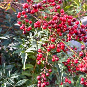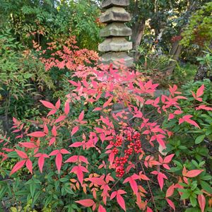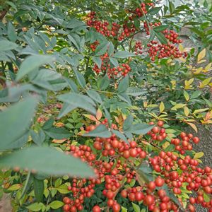 南天の実も葉も赤く色づいて🍁紅葉も進んでいます🍂