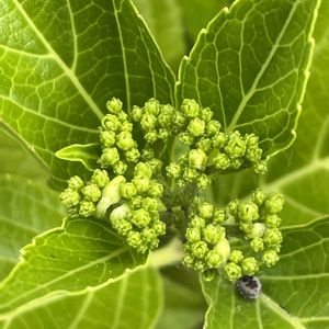 紫陽花💕 ダンスパーティーさん💗 鉢植えで🪴 ほったらかしの子! 今年は花は無理だろうと 花芽が出てくれましたよ 大きな鉢に植え替えだね💕