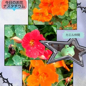 ・オリビア ・プレリンゼ ・センペルビウム ・ギルバ 👑カエル夫婦と 阿,吽のカエル 🏷カエル仲間 🏷6日はカエルの日参加します ❷今日のお花 ナスタチウム🧡💚 以前のベランダで咲かせた元気が出るお花です💪